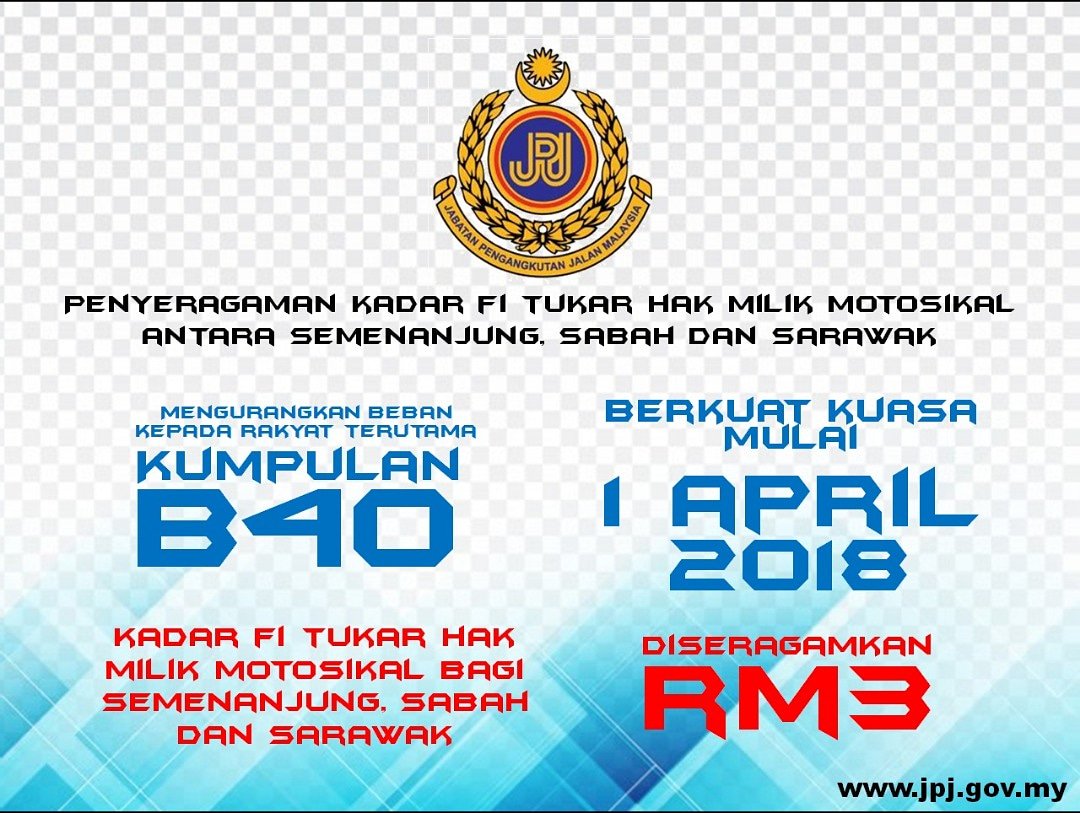 Jpj Negeri Selangor On Twitter Penyeragaram Kadar Fi Tukar Hak Milik Motosikal Antara Semenanjung Sabah Dan Sarawak Harijpjke72 1april2018 Jpjmalaysia Https T Co Txkk7jj3g7 Twitter